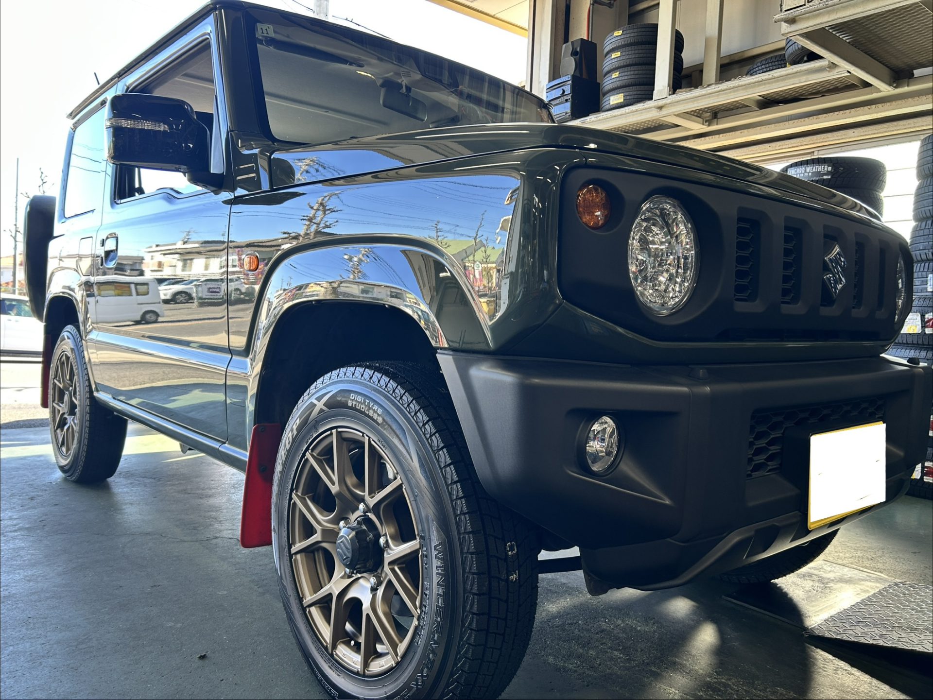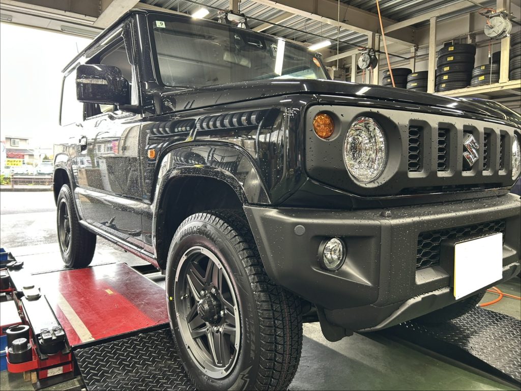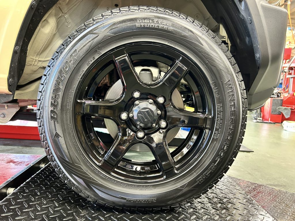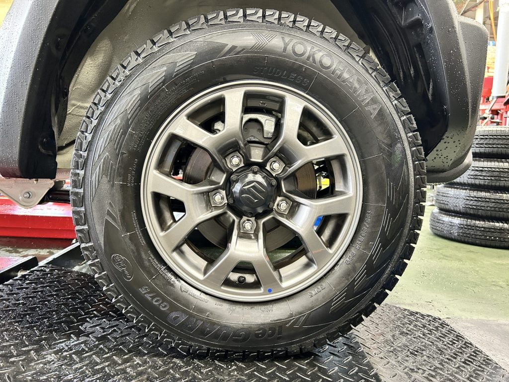 今季も不動の人気ジムニーにもスタッドレスタイヤホイールを装着させていただきました。