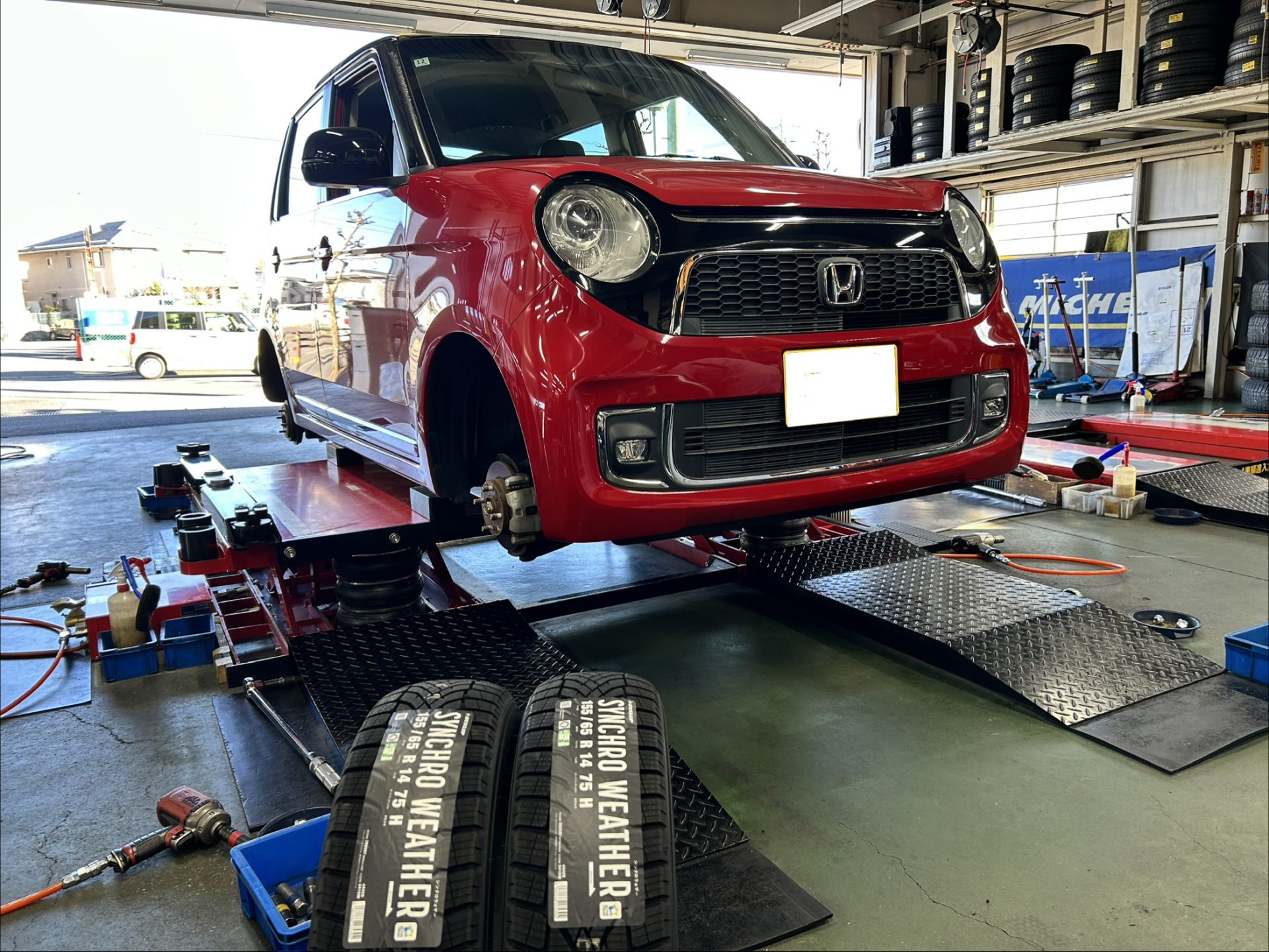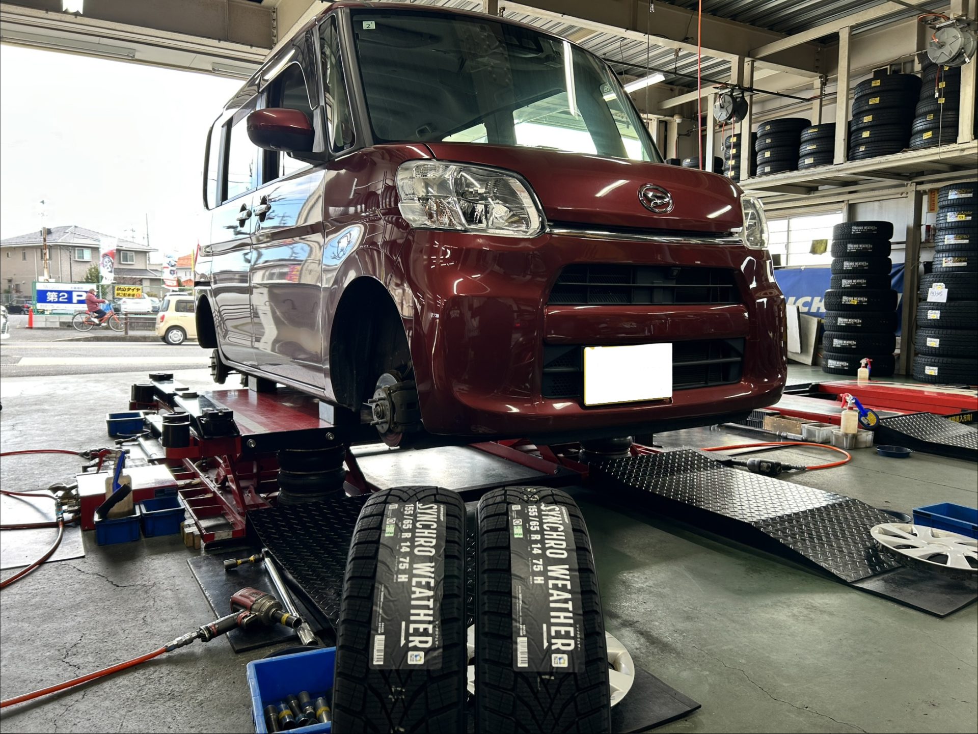 満を持して投入された軽自動車用サイズ「155/65R14」へ早速交換させていただきました。