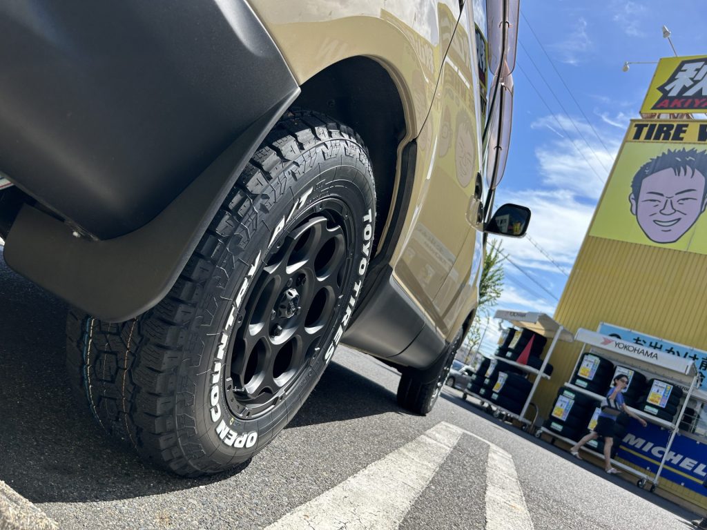 タイヤもご覧の通り、ミニバンタイヤからゴツゴツA/Tホワイトレター(^。^)y-.。o○